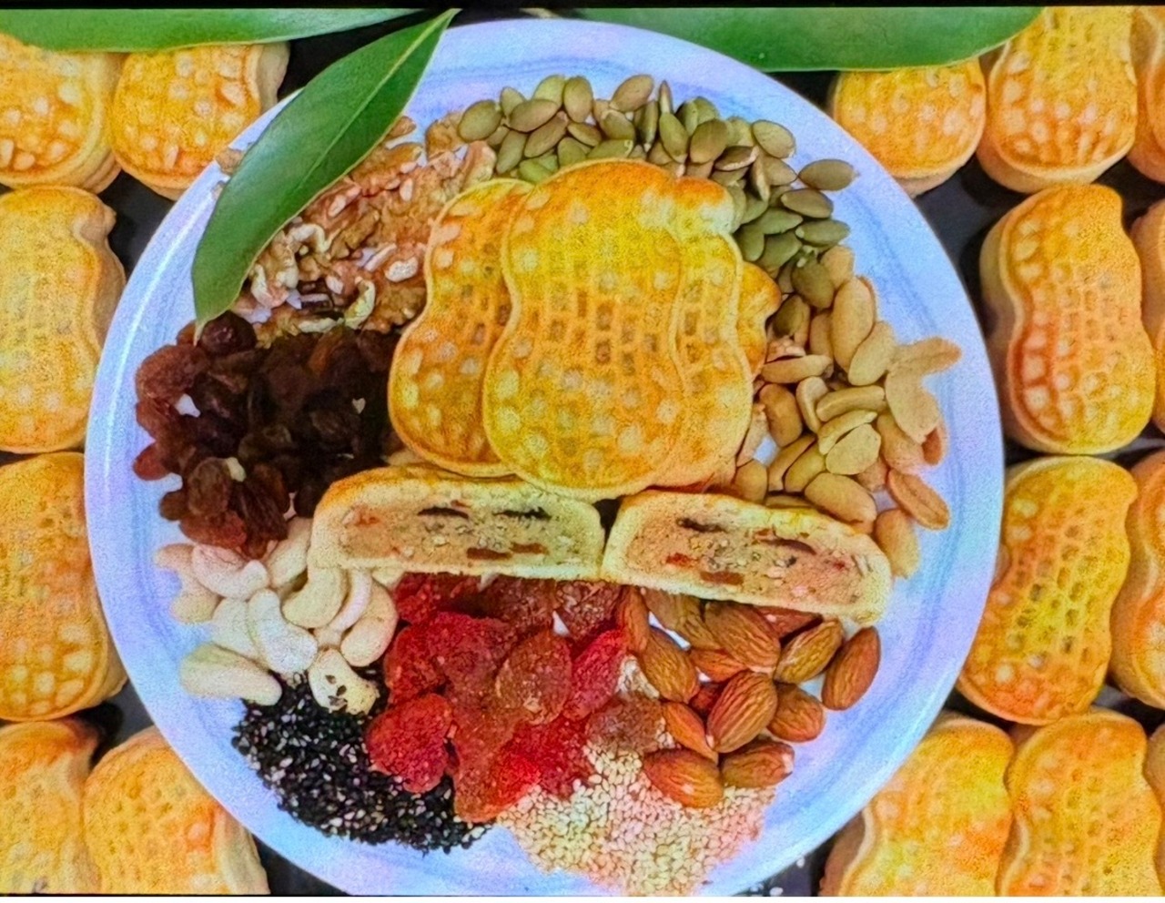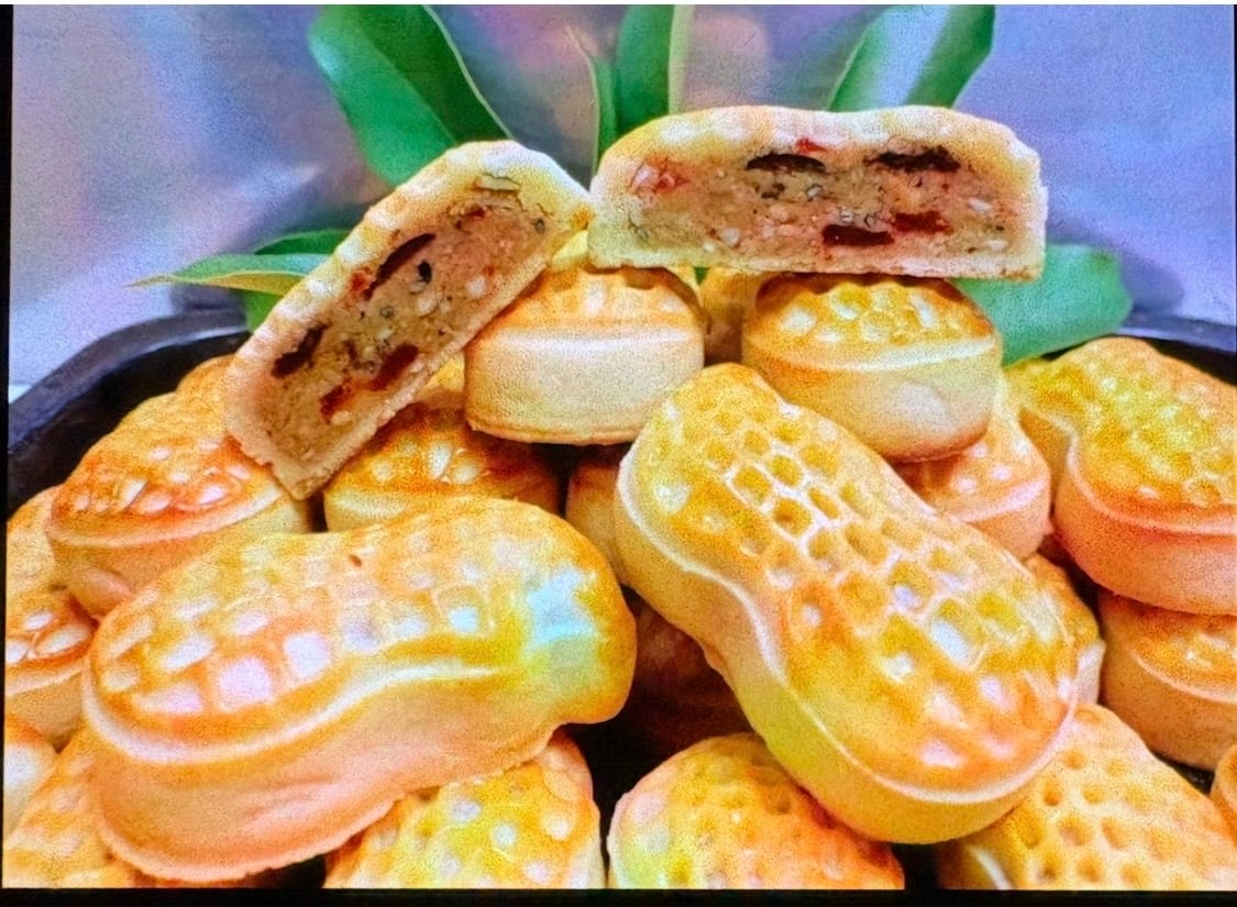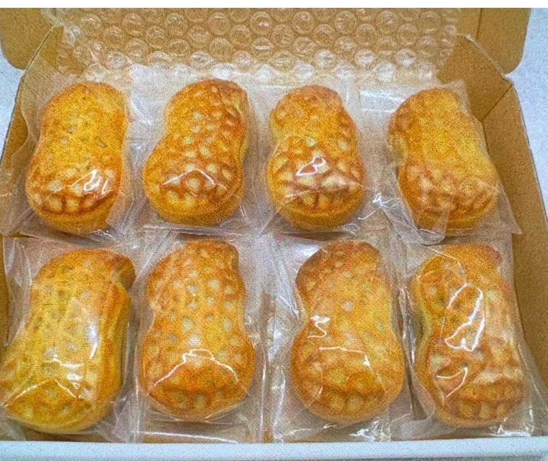 焼き菓子、落花生の形をしたクッキー生地の中に、アーモンド、カボチャの種、カシューナッツ、レーズン、ドライストロベリー、黒白ゴマなどが入っている食べ応えのあるナッツパイです。